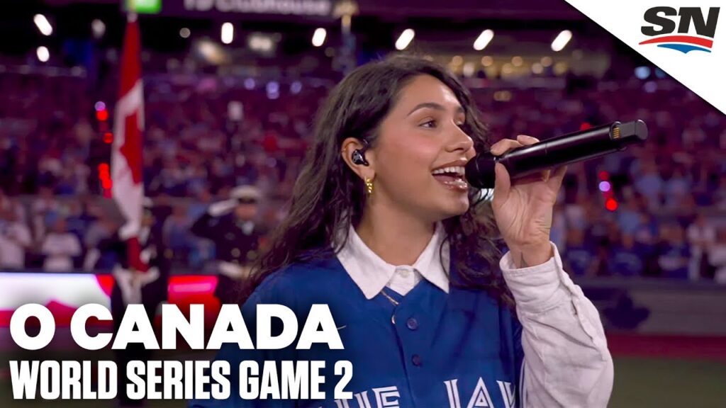 Canadian singer-songwriter Alessia Cara ignites the Rogers Centre crowd ahead of game 2 of the World Series with a stirring rendition of “O Canada”.
