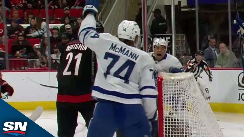Watch as Toronto Maple Leafs forward Bobby McMann scores against the Carolina Hurricanes on the first shot of the game to increase the team’s streak of finding the back of the net on the first shot for the fourth consecutive game.
