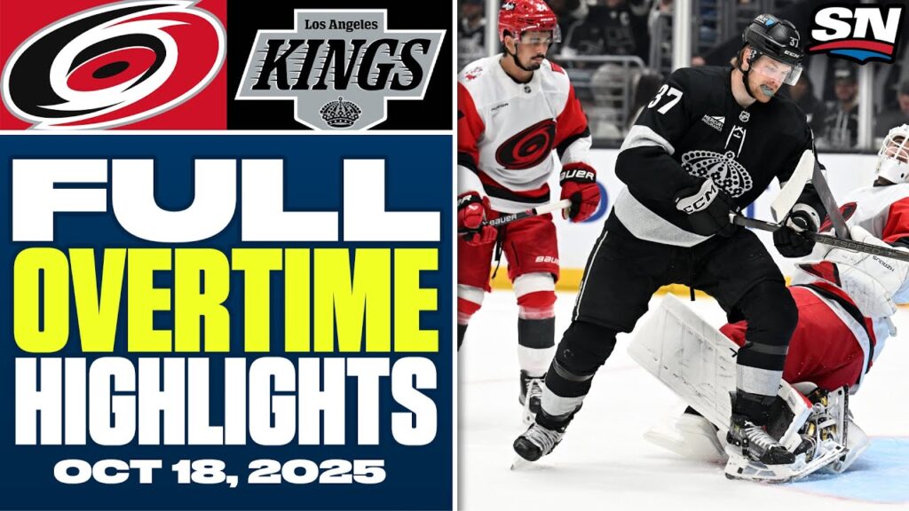 Watch the full overtime highlights between the Carolina Hurricanes and the Los Angeles Kings from October 18, 2025.