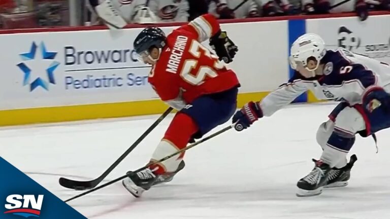 Watch as Florida Panthers forward Brad Marchand gains momentum through the neutral zone and makes a nice move in tight...