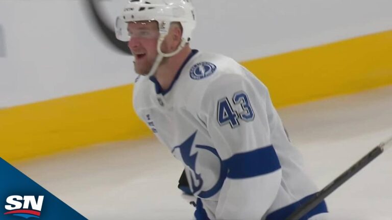 Watch as Tampa Bay Lightning defenceman Darren Raddysh flies down the wing and rifles a shot that sneaks over the...