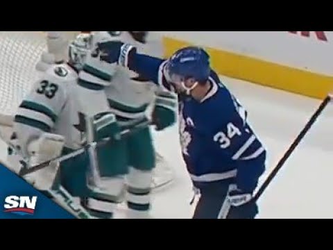Watch as Toronto Maple Leafs' Auston Matthews buries a slap shot goal against the San Jose Sharks on a beauty...