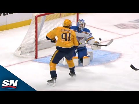 Watch as Nashville Predators forward Steven Stamkos refuses to quit on the play, firing a one-timer that's blocked by St....