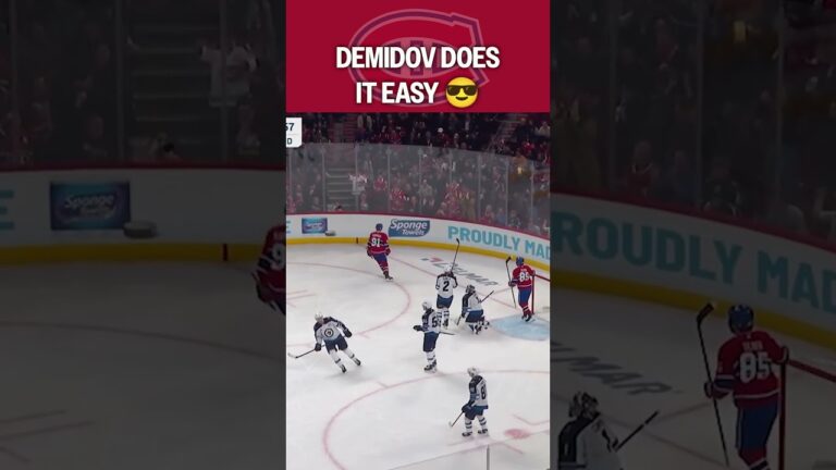 Ivan Demidov shows off ridiculous control, keeping possession with one hand on his stick before sliding a perfect pass to...