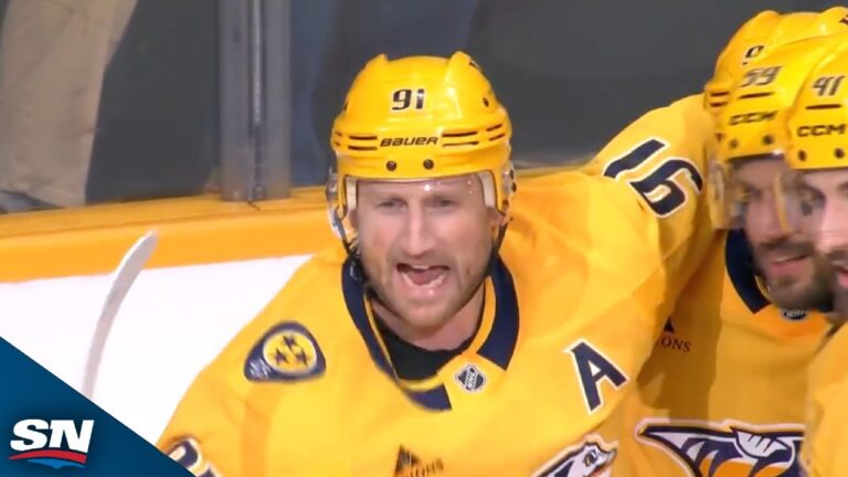 Watch as Nashville Predators' Steven Stamkos taps in his 1,200th career point off a slick wrap-around feed from teammate Luke...