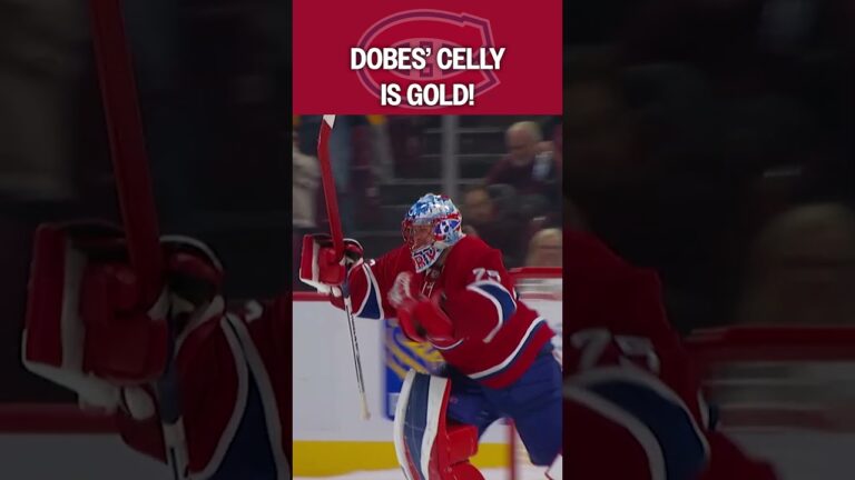 Canadiens goalie Jakub Dobeš can’t hide his excitement after Jets forward Gabe Vilardi rings his shootout attempt off the post,...