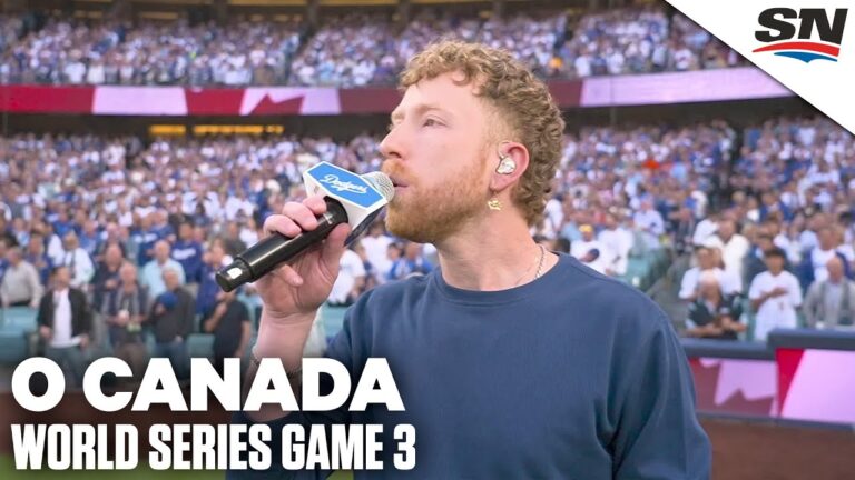Canadian singer-songwriter JP Saxe delivers a moving rendition of "O Canada" ahead of the Toronto Blue Jays' game 3 World...