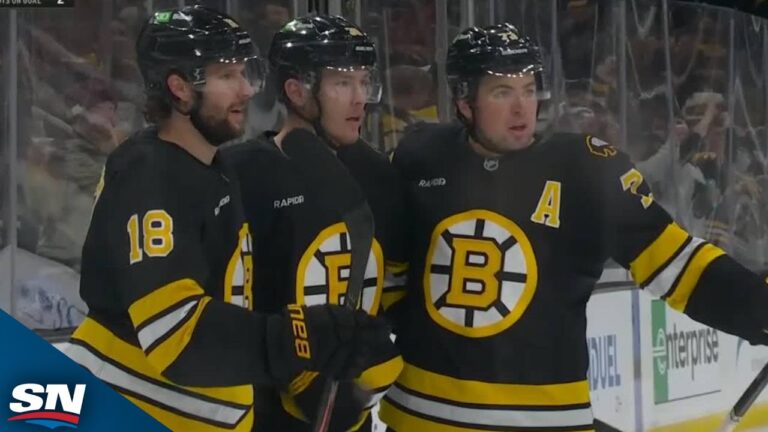 Watch as Boston Bruins' Morgan Geekie goes just under the bar to beat Buffalo Sabres' Alex Lyon, extending his goal...