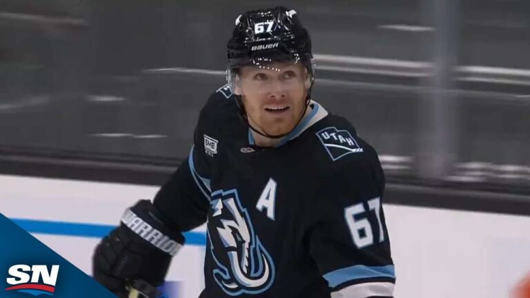 Watch as Utah Mammoth forward Lawson Crouse zips a shot from a sharp angle into the top corner of the...