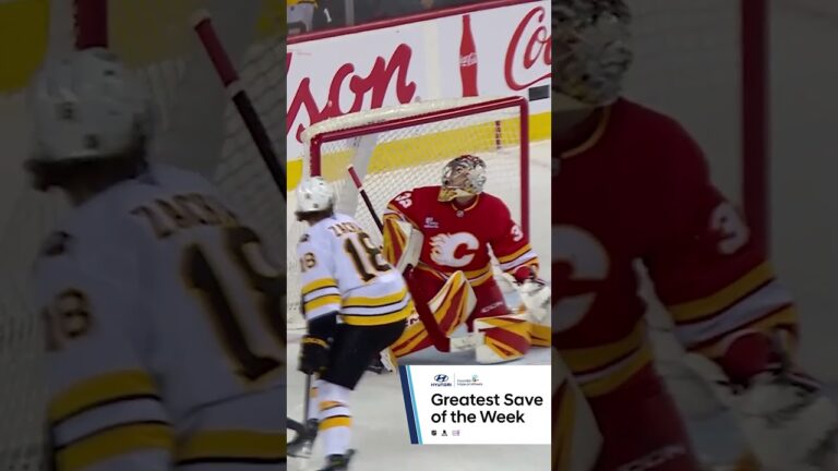 First, Flames goalie Dustin Wolf gets his shoulder on Bruins forward Pavel Zacha's shot and then stops defenseman Nikita Zadorov...