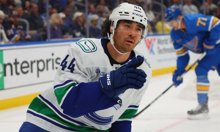 Kiefer Sherwood was traded to the San Jose Sharks by the Vancouver Canucks on Monday for a second-round pick in...