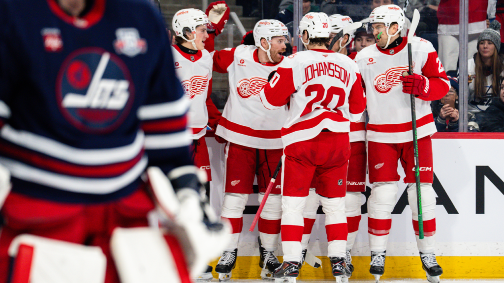 Compher scores twice, Red Wings surge past Jets