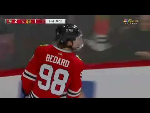 In his second game back Chicago Blackhawks rookie forward Connor Bedard scores against the Ottawa Senators