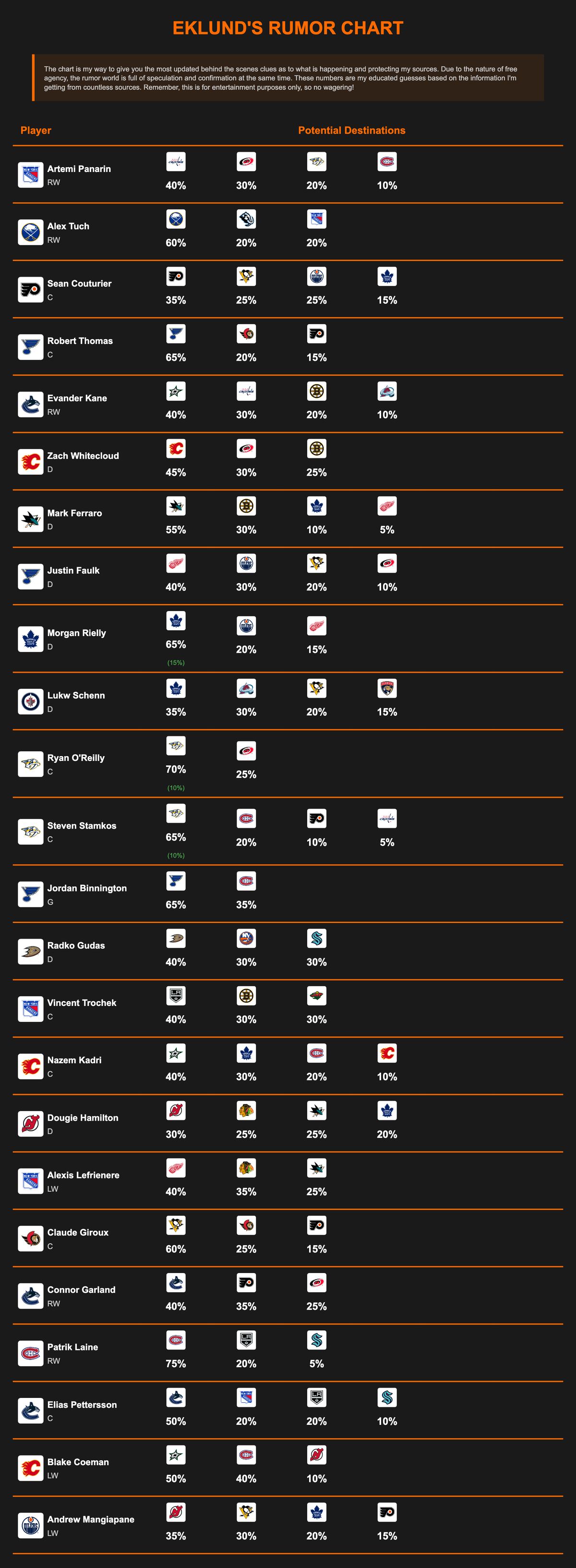 EKLUND’S TRADE RUMOR CHART